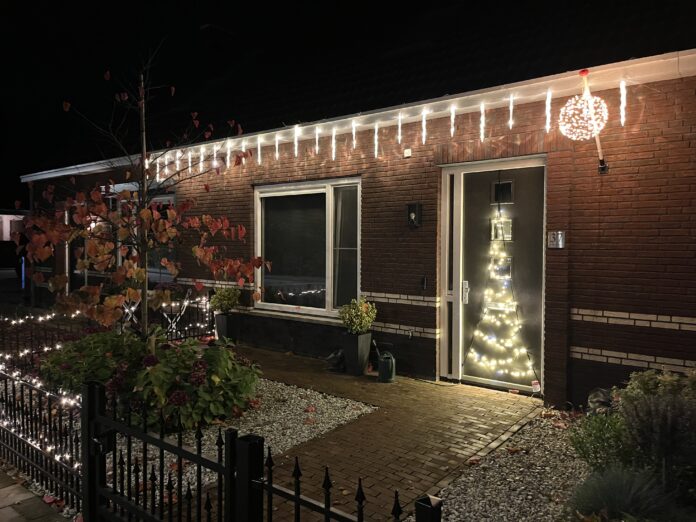 Maar niet overal. Nu ‘de tijd is verzet’ naar wintertijd en de avonden vroeg donker worden, is aan de Scherpenzeelseweg in Goor de eerste tuin in kerstsfeer opgetuigd. IJspegels aan de dakgoot, een kerstboom van lampjes op de voordeur, een kerstbal en vrolijke lampjes rond het tuinhek. Een beetje vroeg? Dat is betrekkelijk. Vrijdag 1 november kunnen we zeggen: volgende maand is het kerst.